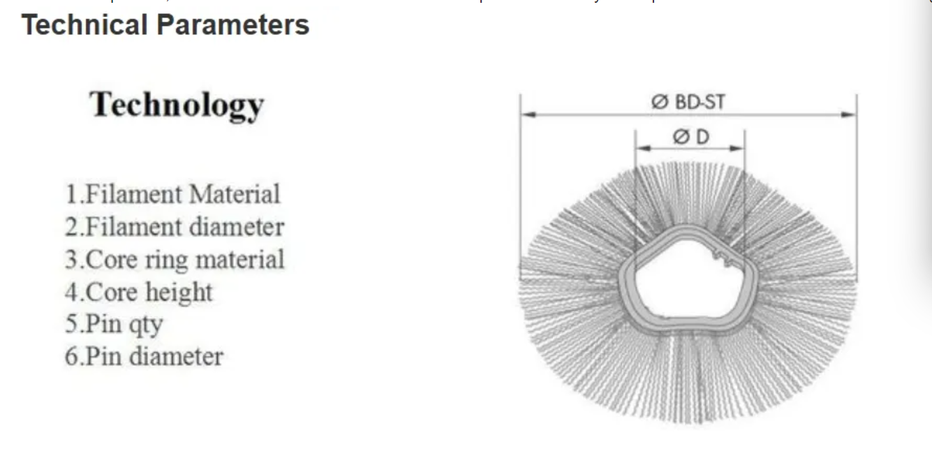 This product is composed of PP bristles and steel ring, make its size as required specification/dimensions/material/color.It is the core component of the snow removal device installed on the front bucket of a loader.