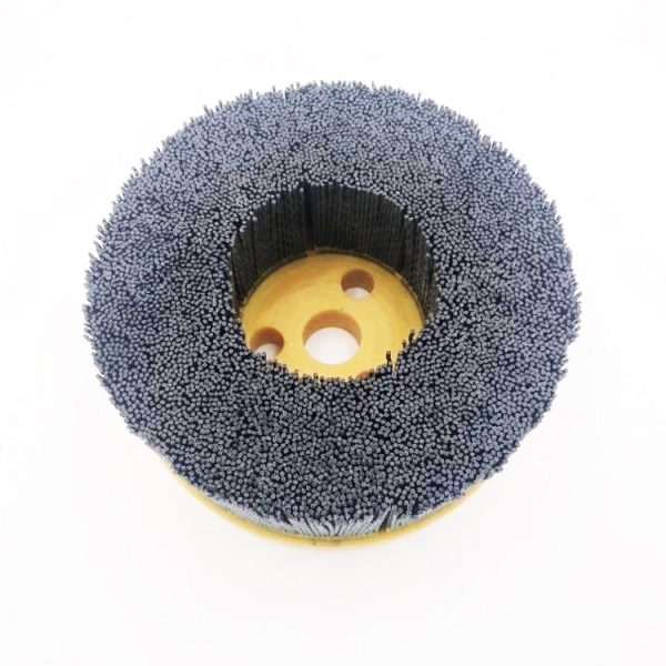 Abrasive grains are embedded in the entire length of the bristles so the sides act like flexible files. These brushes remove workpiece material as well as surface contamination in a single step. The nylon bristles do not scratch and are appropriate for cleaning and wood polishing, stainless steel and aluminium treatment.  These disc brushes won’t leave behind debris that could cause rust on your workpiece. Also they are good for acids and alkalies application.