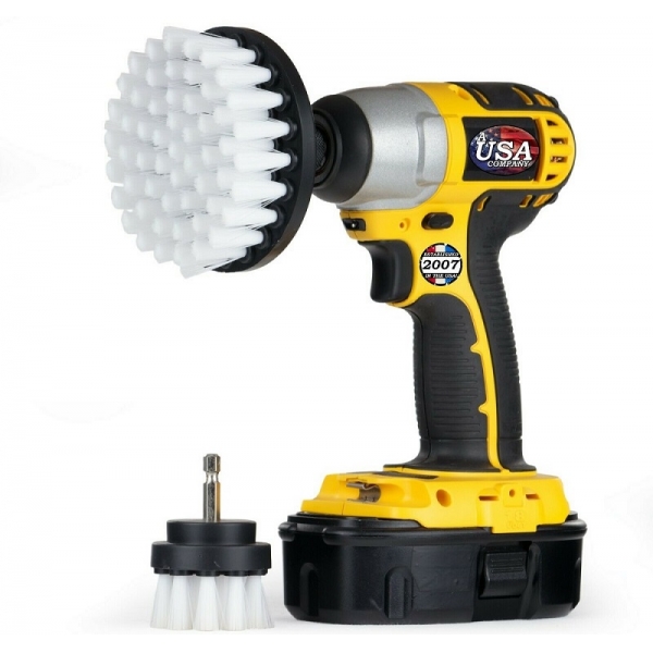 The three different shapes of the drill mounted scrub brush head and soft white scrubber brushes can meet various requirements of cleaning in a household. These drill bit scrub brushes have hex shaft that fits most corded and cordless drills.