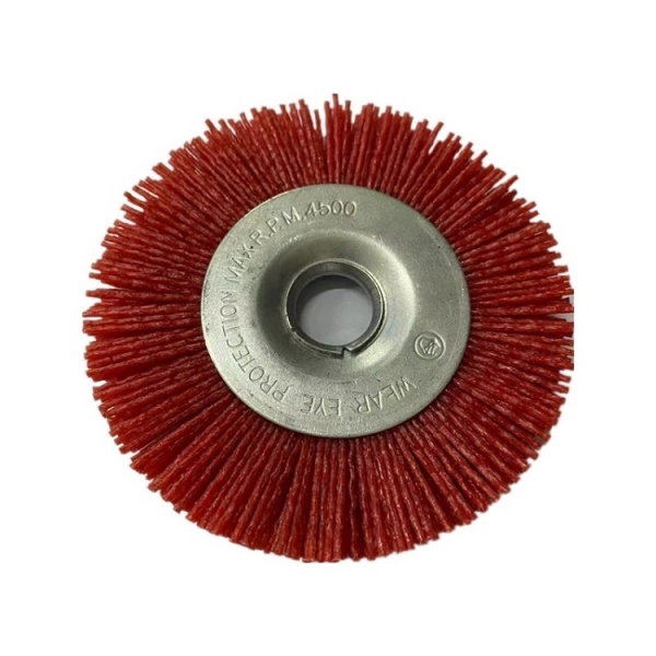 This wheel brush is composed of abrasive nylon wire and metal plate, can be used for wood carving, nuclear carving, mahogany furniture polishing, do not need to add grinding paste, because of the elasticity of abrasive wire, and the internal emery, suitable for wood carving, relief, nuclear carving, engraving and so on.