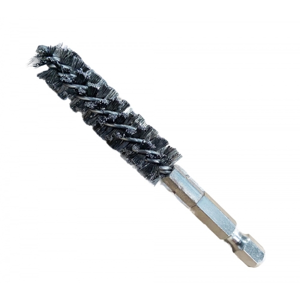 产品特征:这种管刷由碳钢丝制成,扭成 4 根线,形成四根杆状双螺旋型管刷。除了钢丝之外,不锈钢丝、黄铜丝,甚至磨料尼龙丝也可以制成这种形状。