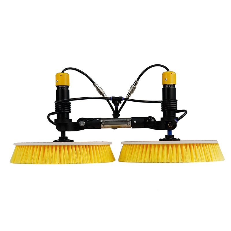 太阳能电池板清洁刷由机器人或设备安装在太阳能清洁机上,用于清除灰尘、碎片、鸟粪等。汇希刷子提供多种类型的用于太阳能电池板清洁应用的刷子,广泛用于保持太阳能发电厂的效率,包括单头电动清洁刷、双头电动清洁刷和圆柱形光伏清洁辊刷。 双头太阳能电池板清洁刷及杆标准规格如下: